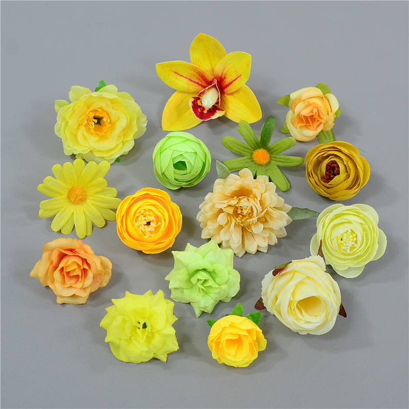 黄色系シミュレーション花絹花かんざし花学士帽DIY装飾サロンイベントケーキデザート写真撮影
