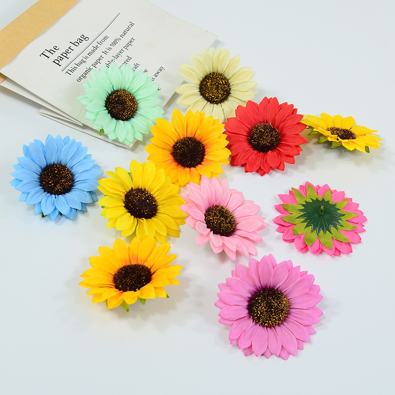 10cmひまわりカラフルな太阳の花の服の帽子の头の饰りdiyの花リングは子供の日のダンスの手首の花を作ります