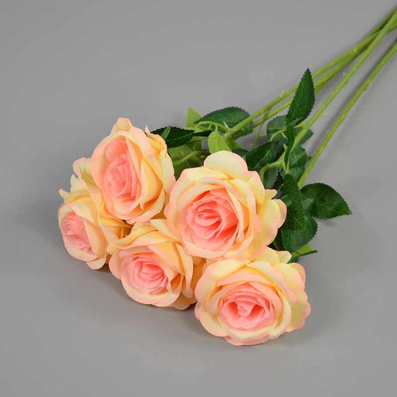家の装飾の置物のシミュレーションのバラの花の単一の枝の食卓のお茶のいくつかの田園の装飾の偽の花束の結婚式のパーティーの絹の花