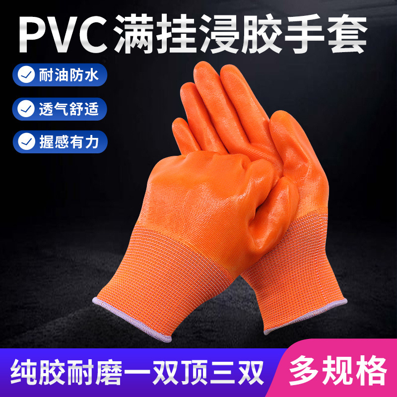 Pvcゴム手袋厚い耐摩耗性防水手袋ゴム労働保護手袋薄いオレンジ色ナイロンゴム防油手袋