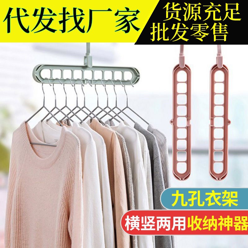 多機能ハンガー家庭用ハンガー寮収納神器干し整理棚フック折り畳みマジック九穴ハンガー