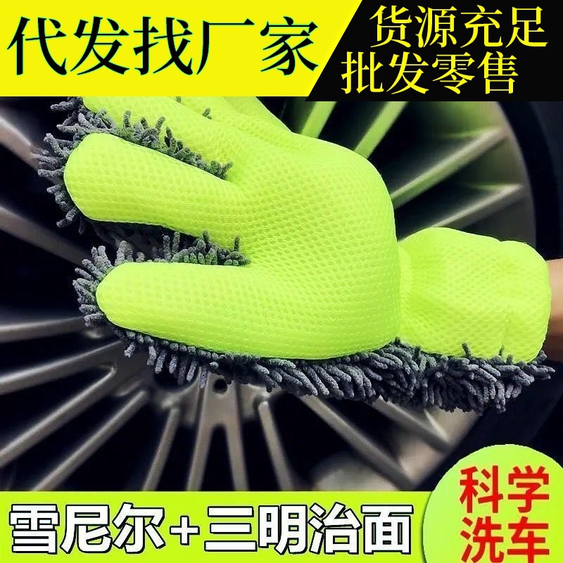 シェニール織の車専用洗車手袋、5本指、両面厚みのある豪華な車の磨き、車の塗装を傷つけず、車のホイールの洗浄