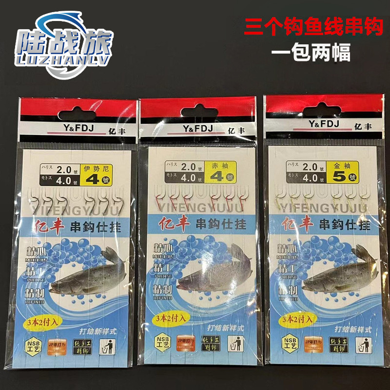 縛られた子糸二重フック純手縛り36センチ10枚板付伊勢尼伊豆金袖黒袖釣り針卸売り
