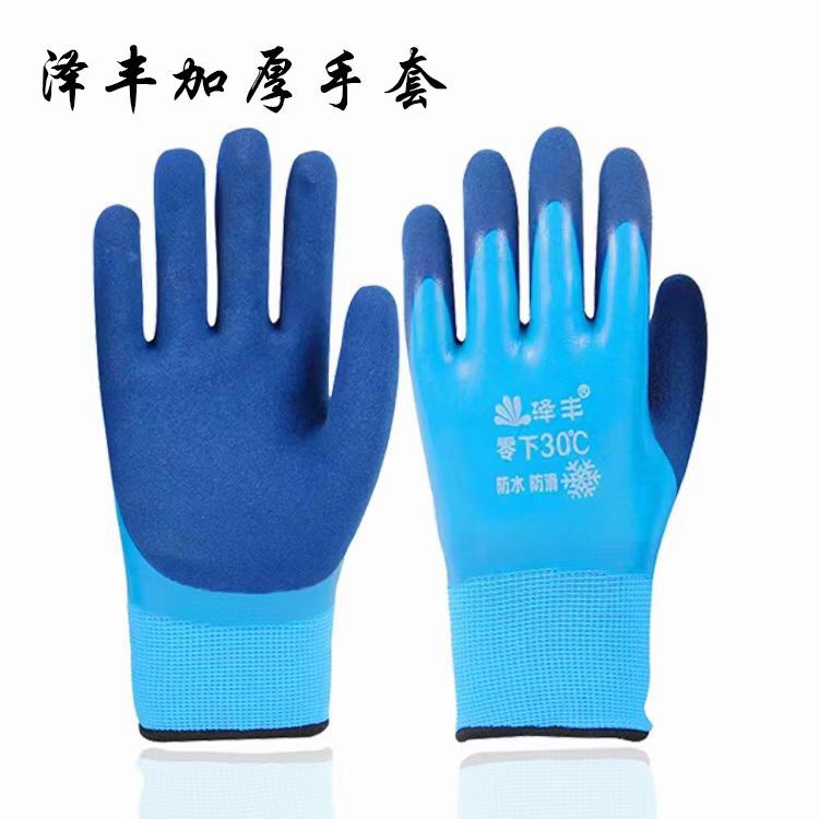 冬の防水厚いベルベット保温労働保護手袋耐摩耗性毛輪滑り止め全ゴム冷凍庫の仕事防寒漁具