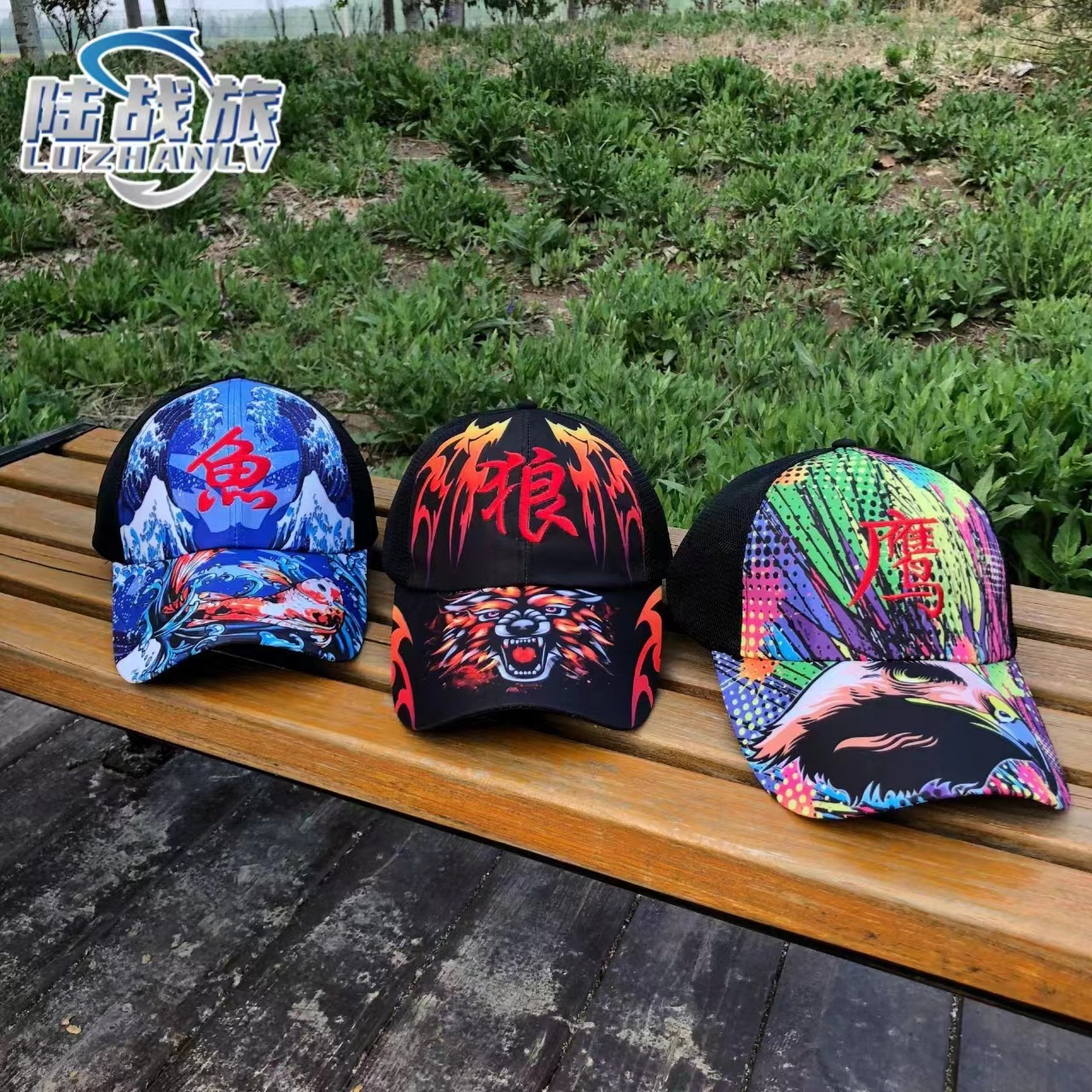 卸売り夏の通気性帽子の日よけ帯は帽子の通気性帽子に沿って魚の漁具と網の迷彩帽子を釣ります。