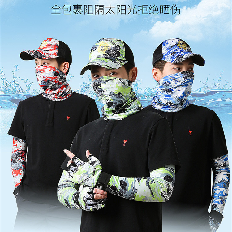 アウトドアスーツ4点セット釣り手袋帽子氷袖マフラーマスク日焼け止め漁具釣り用品