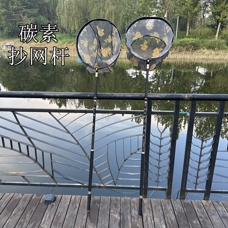 炭素の網の棒の黒金の網の棒の泡の延長のハンドルの炭素の2.1メートルの伸縮性の釣りの網の競技の網