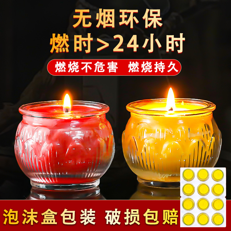 ショートニングランプ24時間無煙蘇油灯菩萨蓮花灯仏供灯家庭用供養香薫ろうそく仏灯