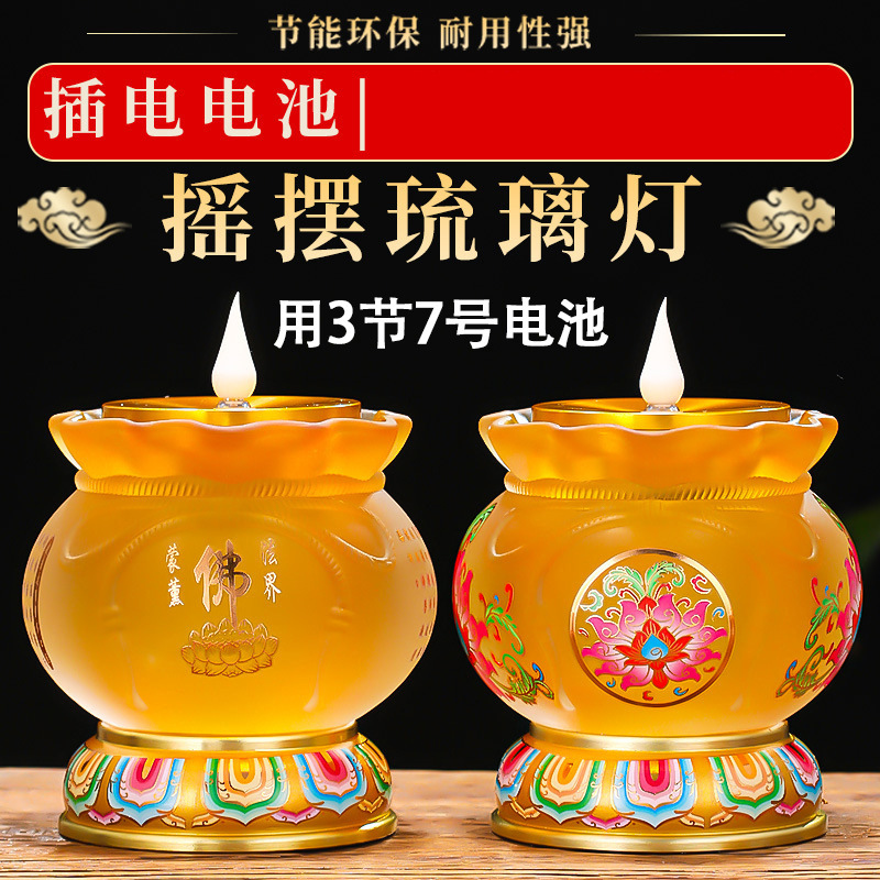 新型瑠璃灯電子蓮花灯仏前観音灯揺れ動くろうそくledランプ観音灯菩薩長明灯