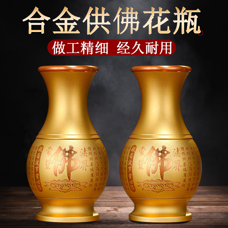合金の花瓶は花瓶に供えます。家庭用の浄水カップは観音菩薩の聖水瓶に供えます。