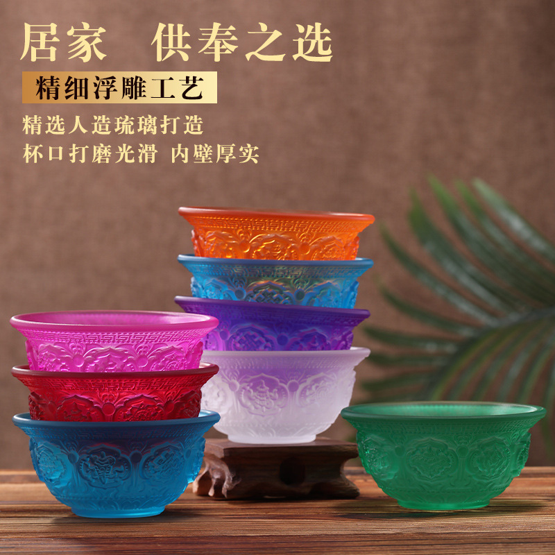 瑠璃蓮花供碗家庭用上供専用碗八吉祥供仏碗拝神碗仏前給水碗斎飯碗