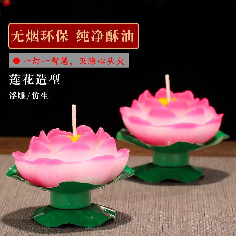 植物のメレンゲのろうそくの仏前の蓮の灯は仏陀の灯の家庭の菩薩の長明灯の仏堂のハスの灯を供えます。