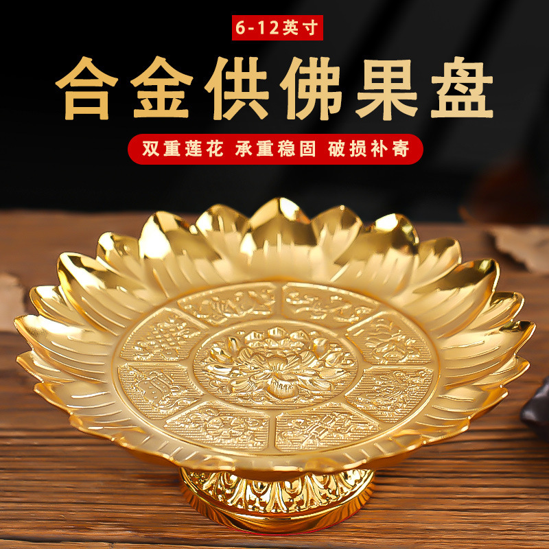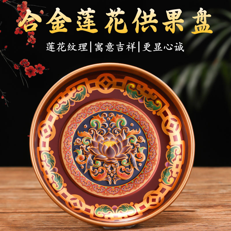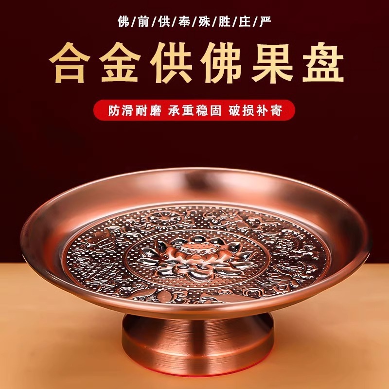 新型の合金の皿の家庭用の献上品の皿の仏の前で果物の皿の仏堂の財神の平底の滑り止めの果物の皿を提供します。
