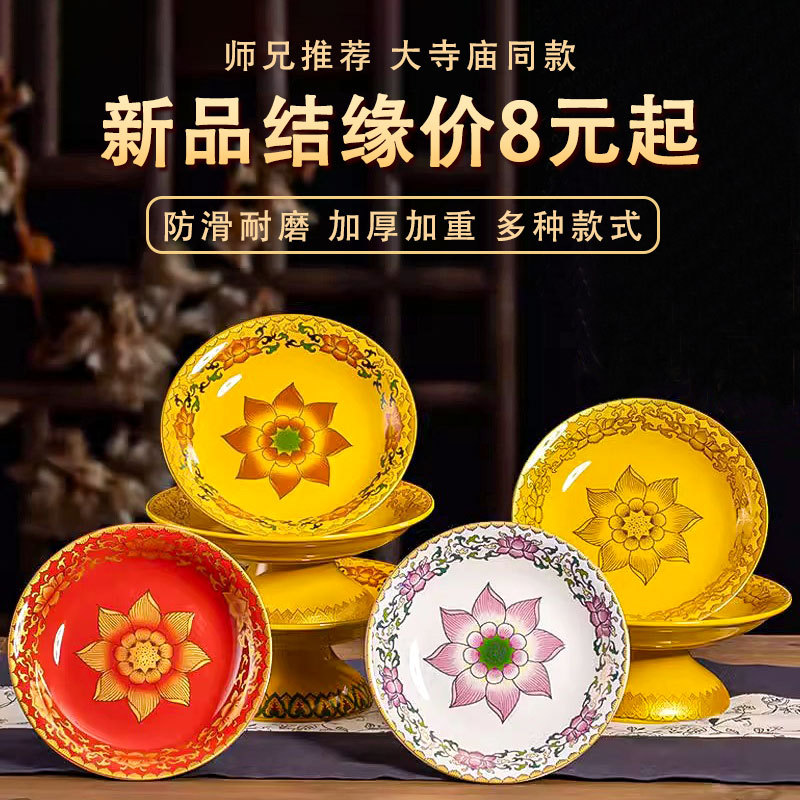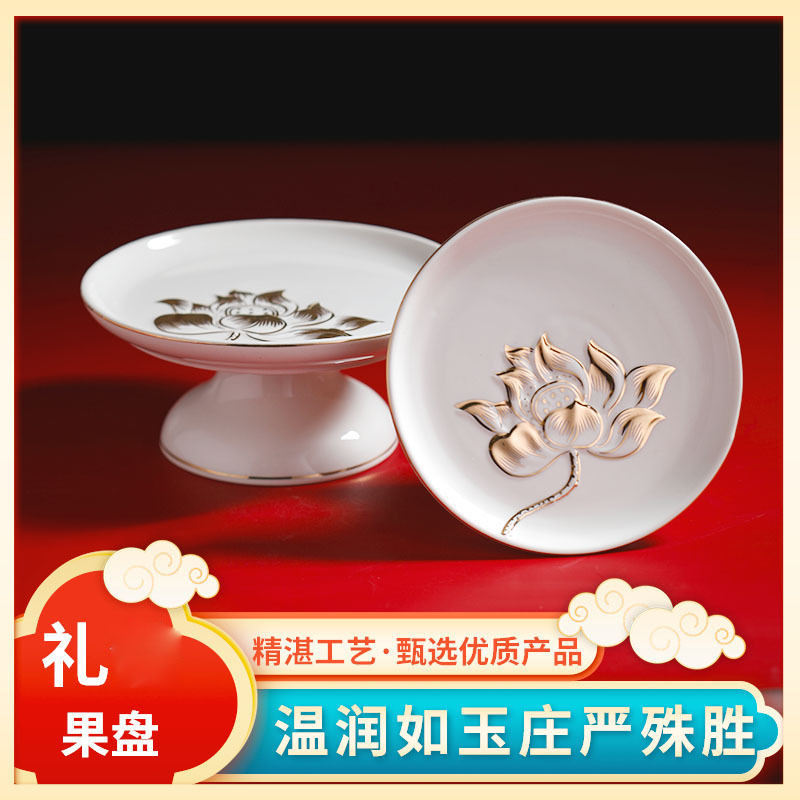 陶磁器の蓮の花は皿の果物を提供します。家庭用は観音の財神を供えます。