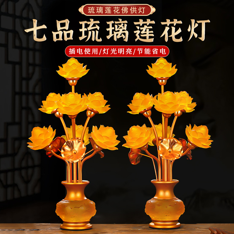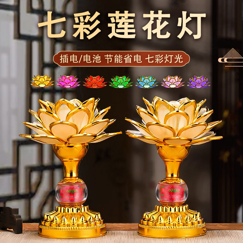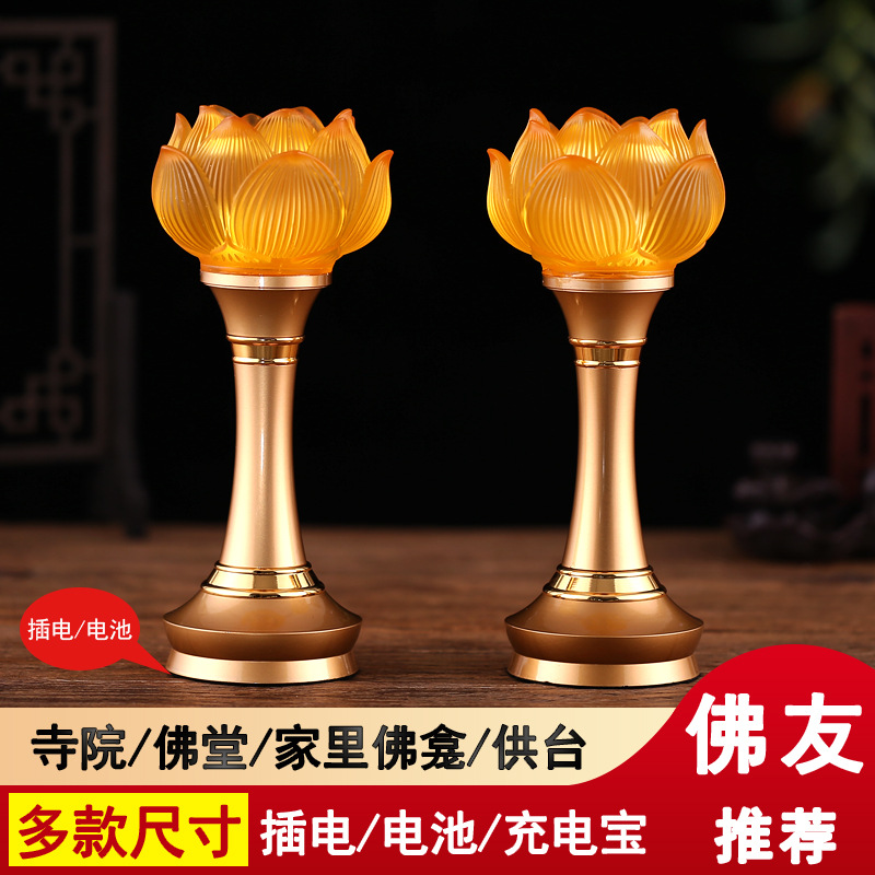 蓮花灯仏供灯一対の電気家庭用供仏led長明灯瑠璃七色仏堂灯観音仏前
