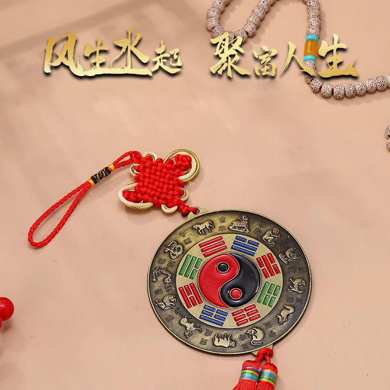車載真鍮八卦鏡車内平安凹凸鏡ペンダント十二生肖平面鏡陰陽魚家庭用装飾