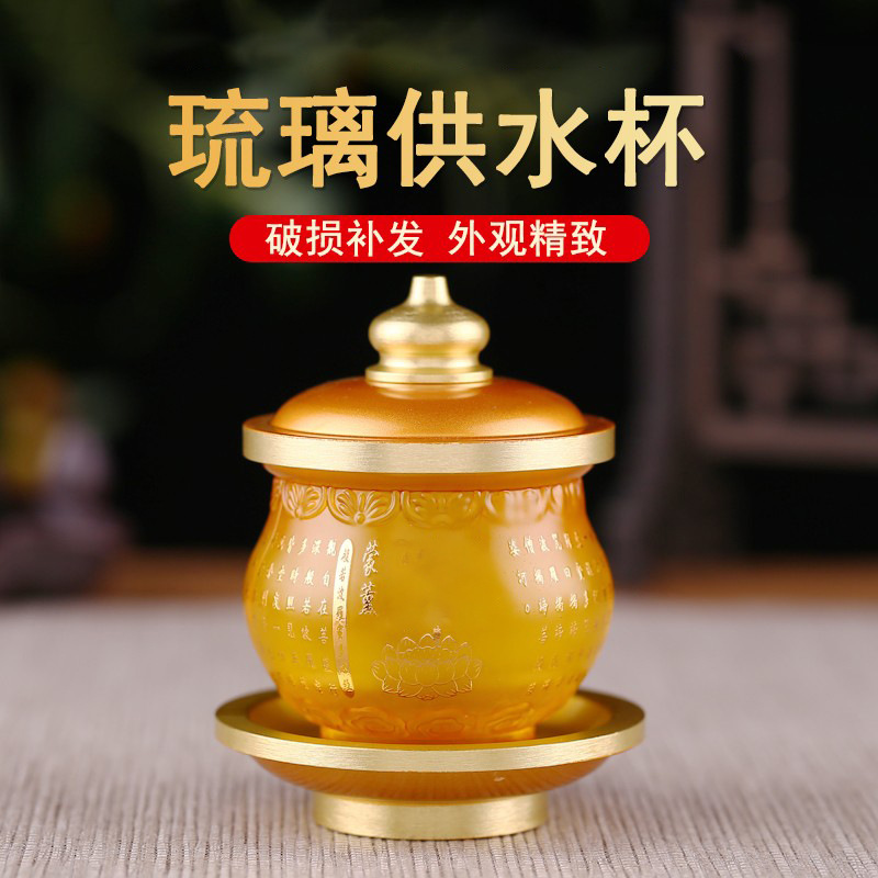 瑠璃給水杯供仏杯家庭用仏前供観音聖水杯菩薩浄水杯供杯財神貢杯