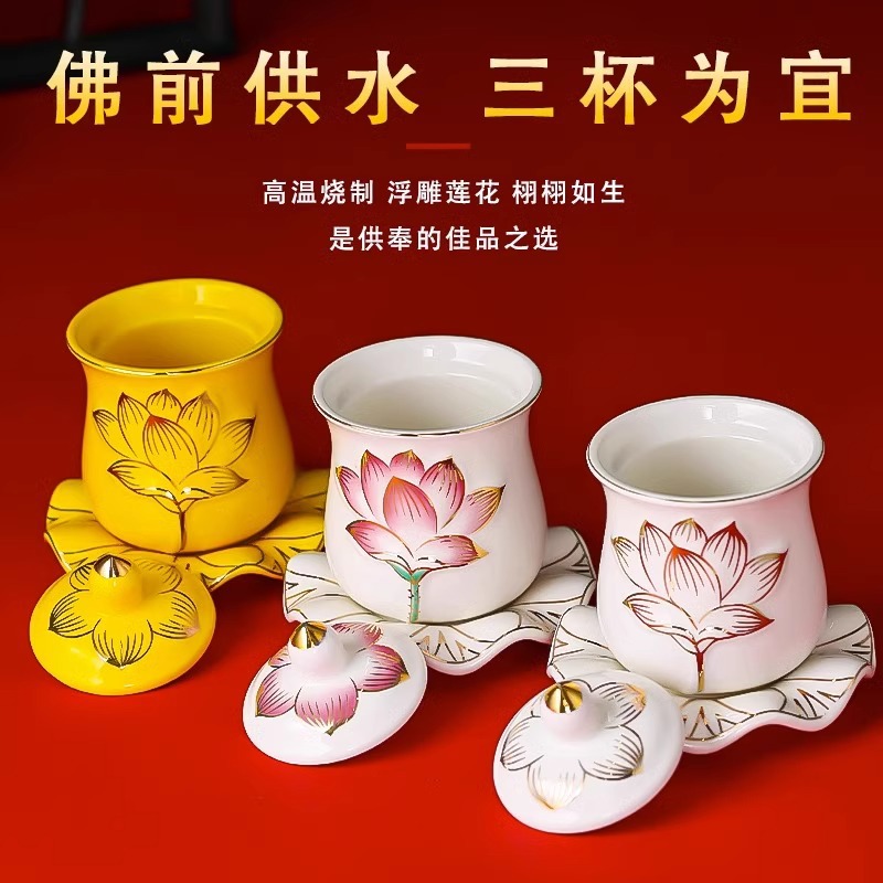 給水杯財神観音家庭用蓮花供杯大悲水仏具杯供仏浄水杯仙家杯三供杯
