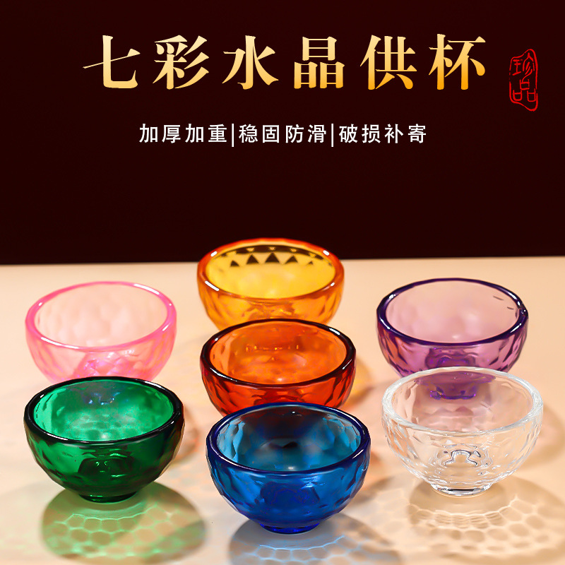 七色瑠璃給水杯家庭用仏前七供八供菩薩聖水杯水晶碗給水碗置物