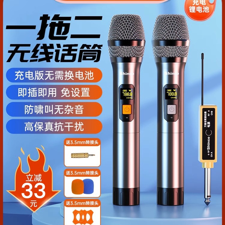ワイヤレスマイクとオーディオ一体型家庭用カラオケ専用ユニバーサル1対2 KTV歌唱受信機
