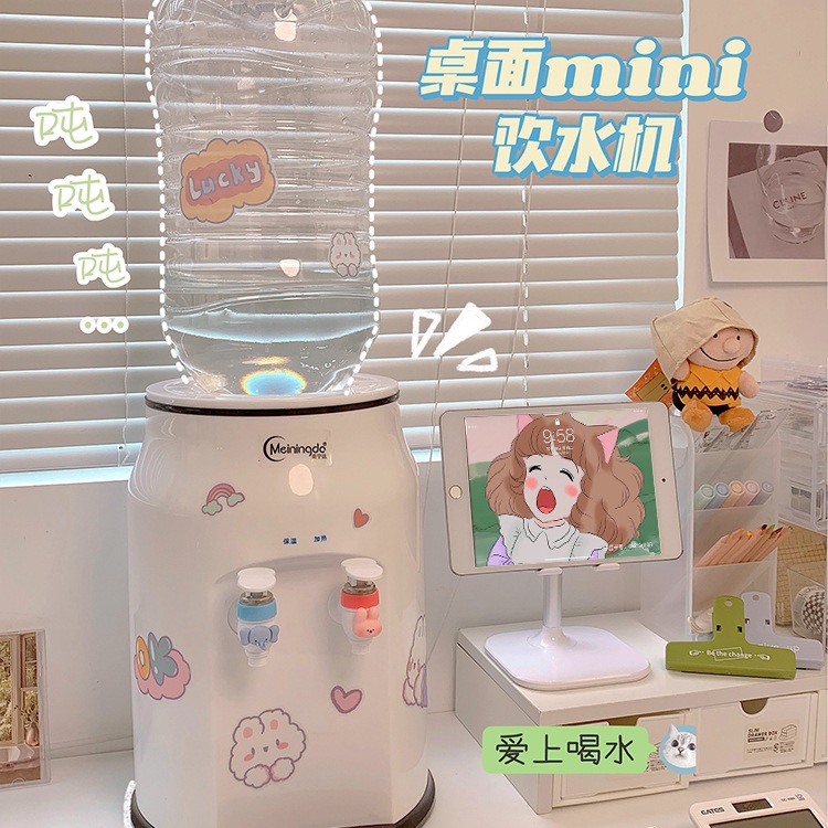 自由に飲める!ミネラルウォーター ミニウォーターディスペンサー デスクトップバレル 家庭用小型インスタントホット かわいい学生寮