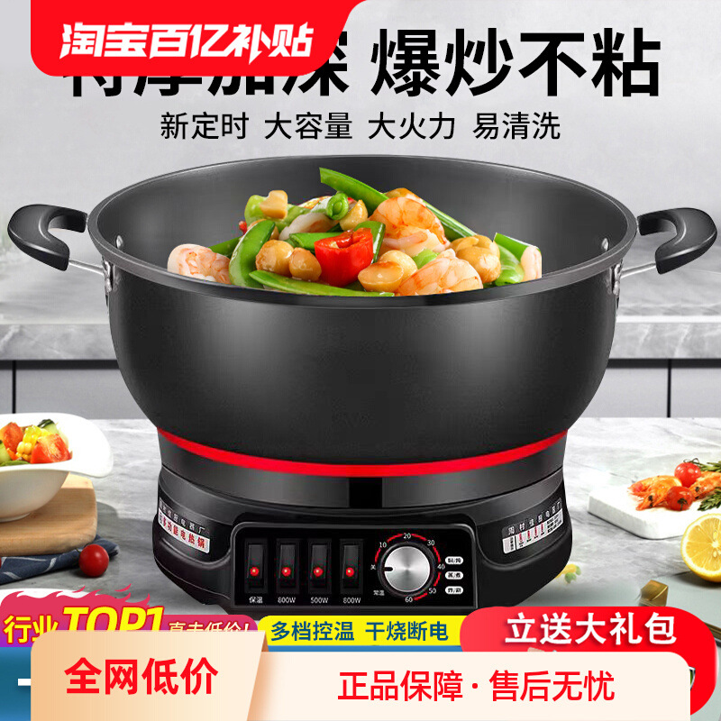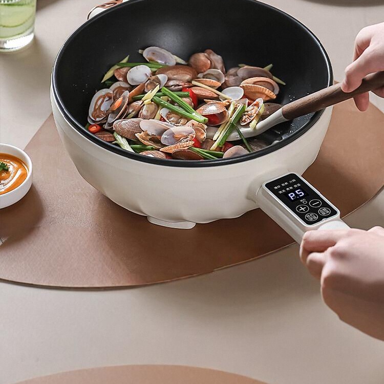 ノンスティック電気中華鍋、家庭用多機能電気鍋、電気鍋、蒸し器、煮込み鍋、電気鍋、プラグイン中華鍋