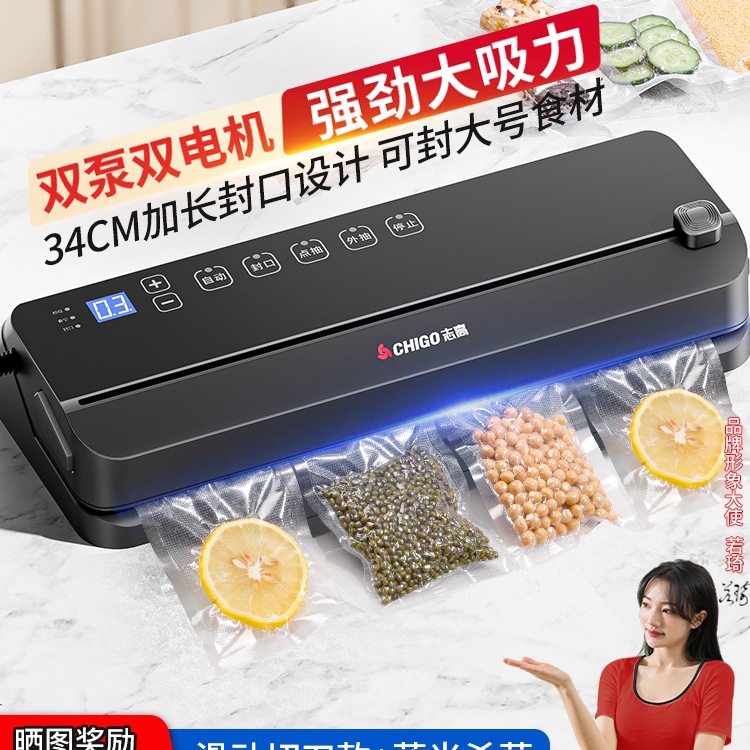 真空シール機小型家庭用食品包装機真空鮮度保持袋プラスチックシール機全自動シールコンプレッサー