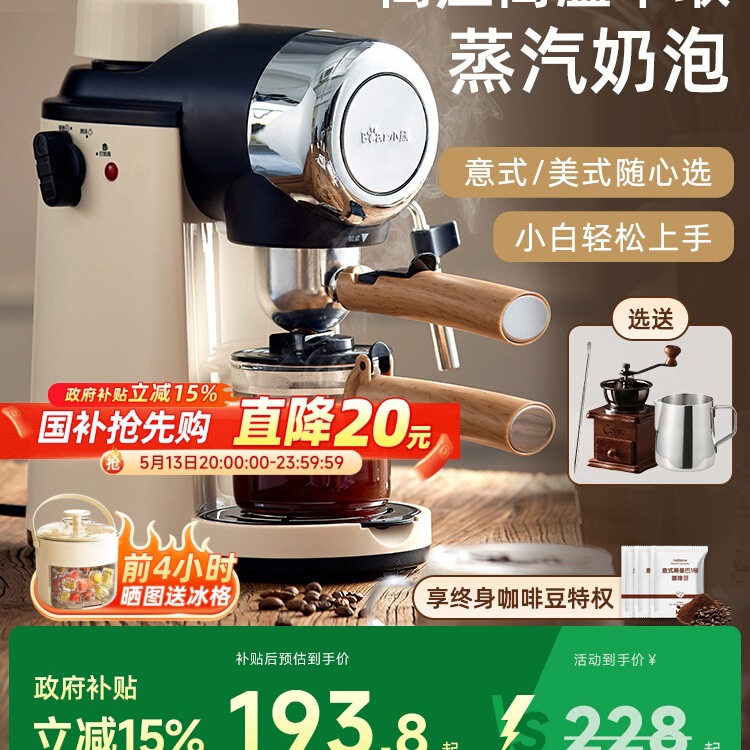 リトルベアコーヒーマシン家庭用小型イタリア製半自動オフィスオールインワンマシンアメリカンハンドグラインダーコーヒーポット