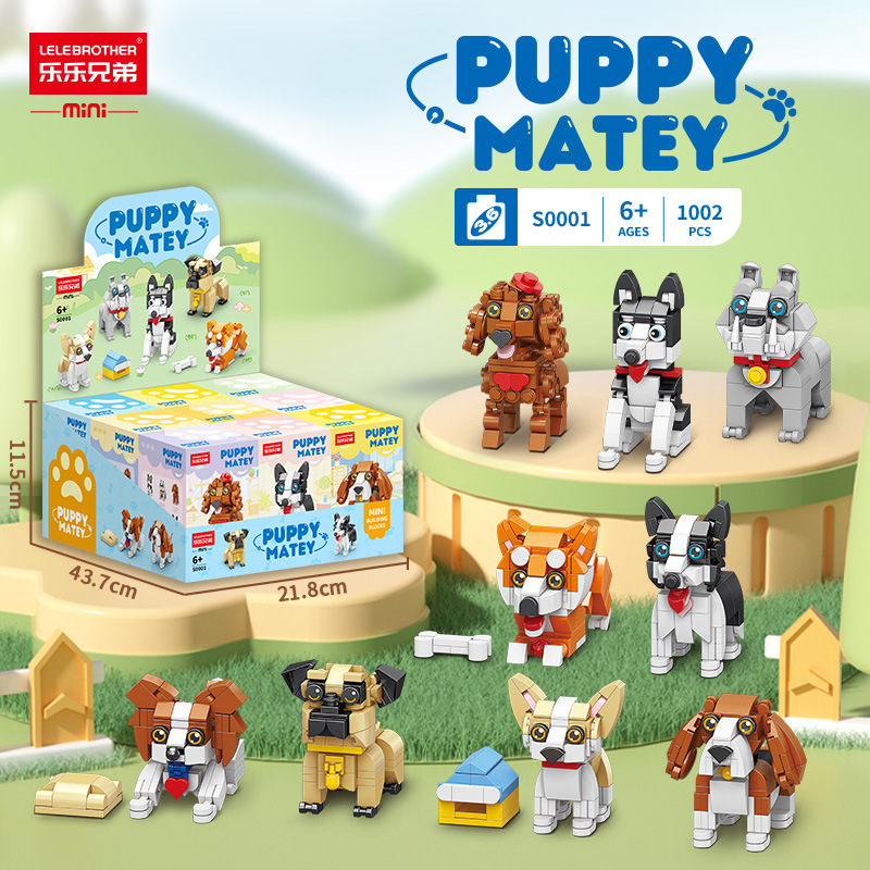 楽楽兄弟萌犬ペットセットハスキー巴哥辺牧比格貴賓犬組み立て模型組み立て積み木