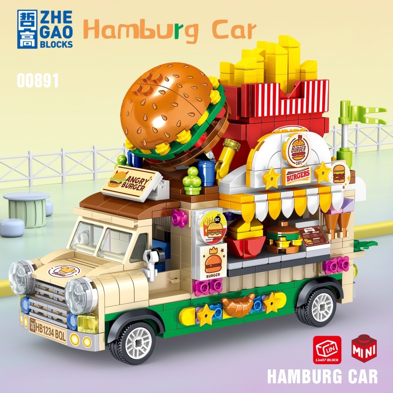 哲高00891カラフルな街の風景グルメ車のハンバーガー車の組み立て模型子供の積み木のおもちゃのプレゼント