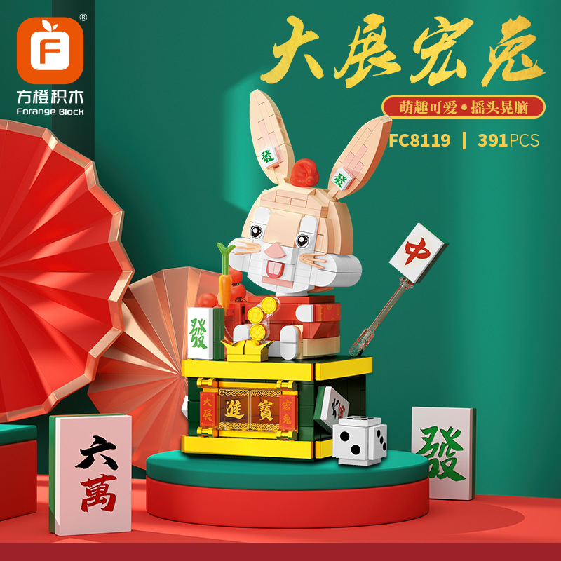 方橙8119大展宏兎創意首を横に振ってウサギを組み立てて模型を組み立てます。