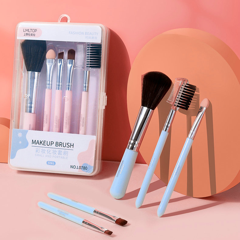 ラメラ化粧セットブラシ5本スポンジアイシャドー頬紅紅唇眉櫛まつげ美化粧ツールl0780