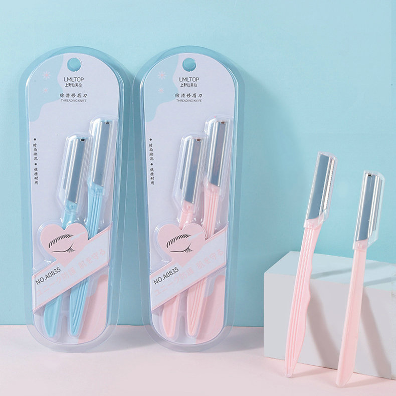 ラメラ滑り止め眉毛修理刀2本刃鋭利ステンレス帯保護カバー付き眉毛修理a0835