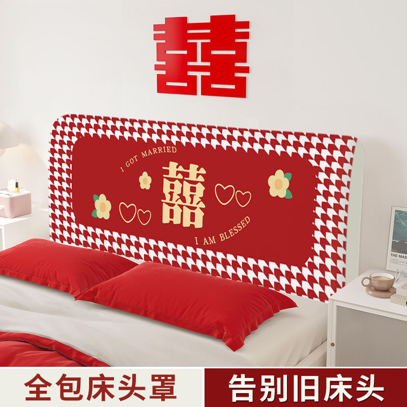 新しいins赤いお祝いベッドヘッドカバー家庭用寝室共通型防塵カバーベッド万能カバー布卸売り