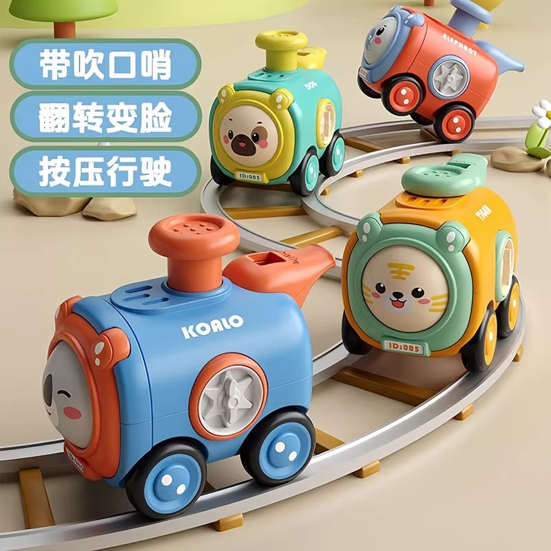 押しておもちゃの赤ちゃんの口笛の車の漫画を変えます。
