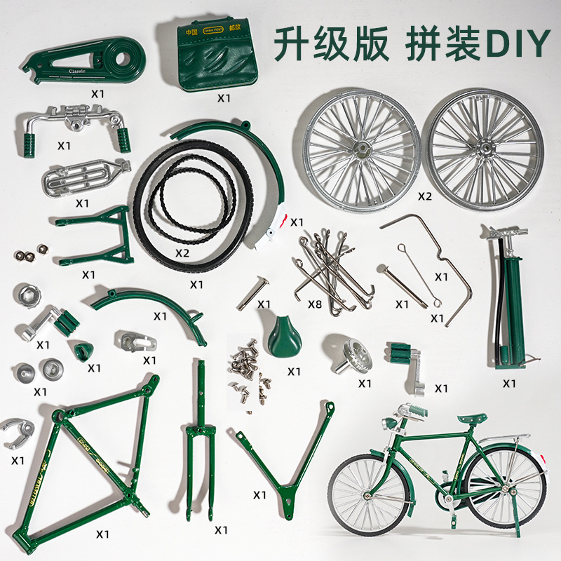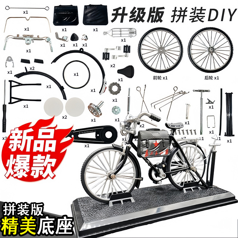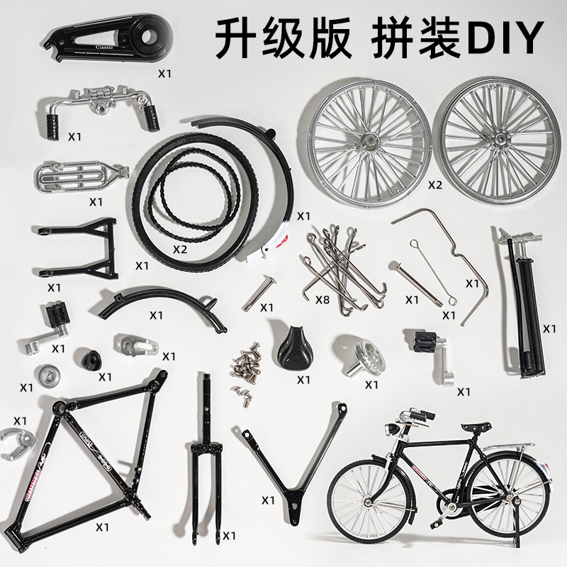 二八大杠DIY合金自転車分解組立版レトロ自転車模型組み立て飾り玩具レトロ風