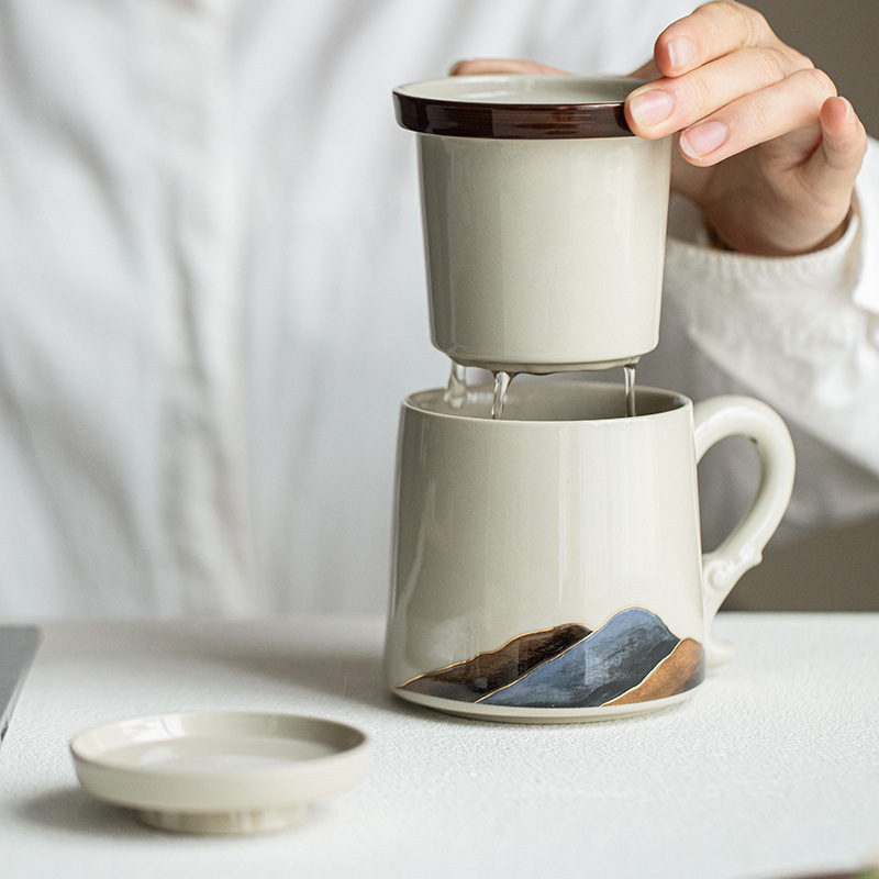 山山而川办公杯马克杯随手泡茶具logo礼陶瓷文创商务聚会毕业纪念