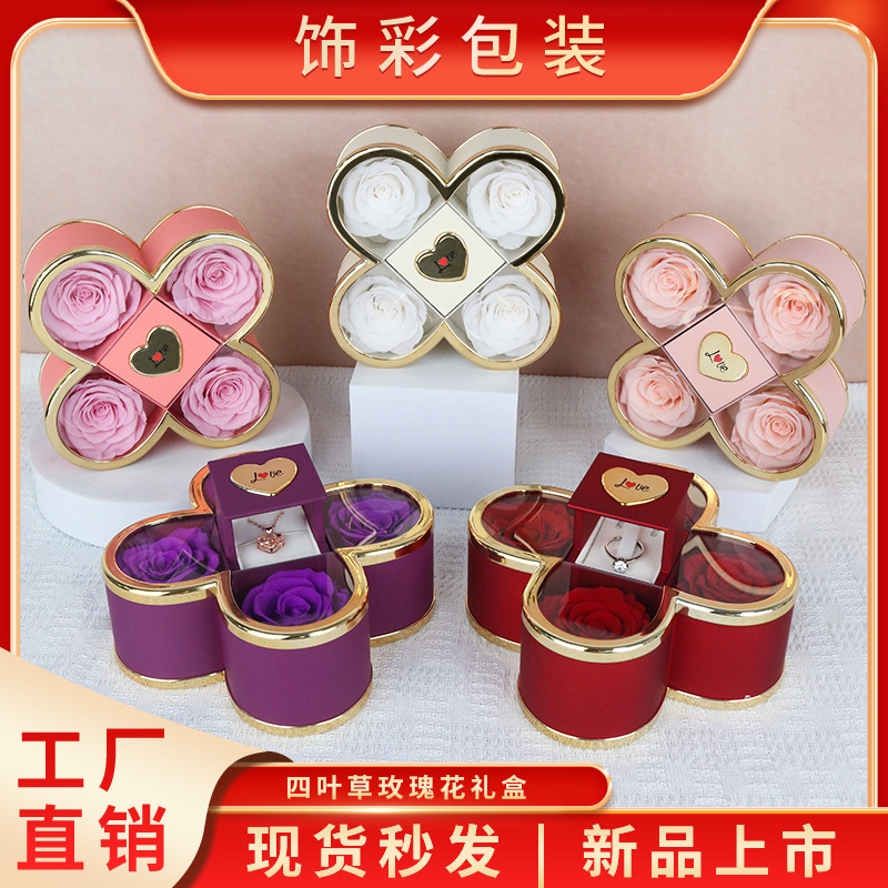 創意昇降四葉草永生花礼箱バレンタインデーバラの首飾り箱ネックレス指輪アクセサリー箱現物