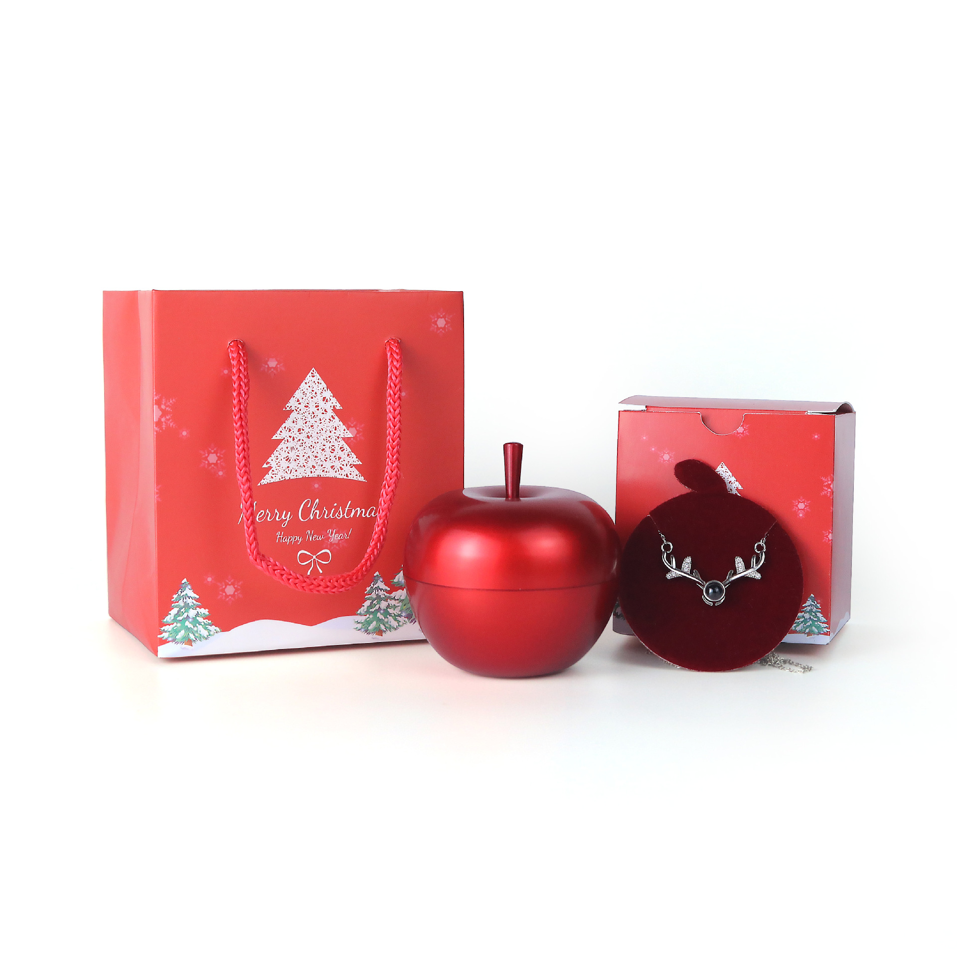 クリスマスプレゼント金属アップルジュエリーボックス両开きリフトギフトボックスネックレスリングクリスマスバレンタインギフトボックス