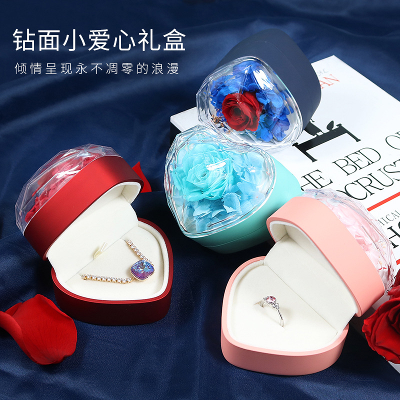 国境を越えて人気のある愛心型ジュエリーケース石鹸永生花ネックレス指輪ケースバレンタインデー永生花ギフトボックス