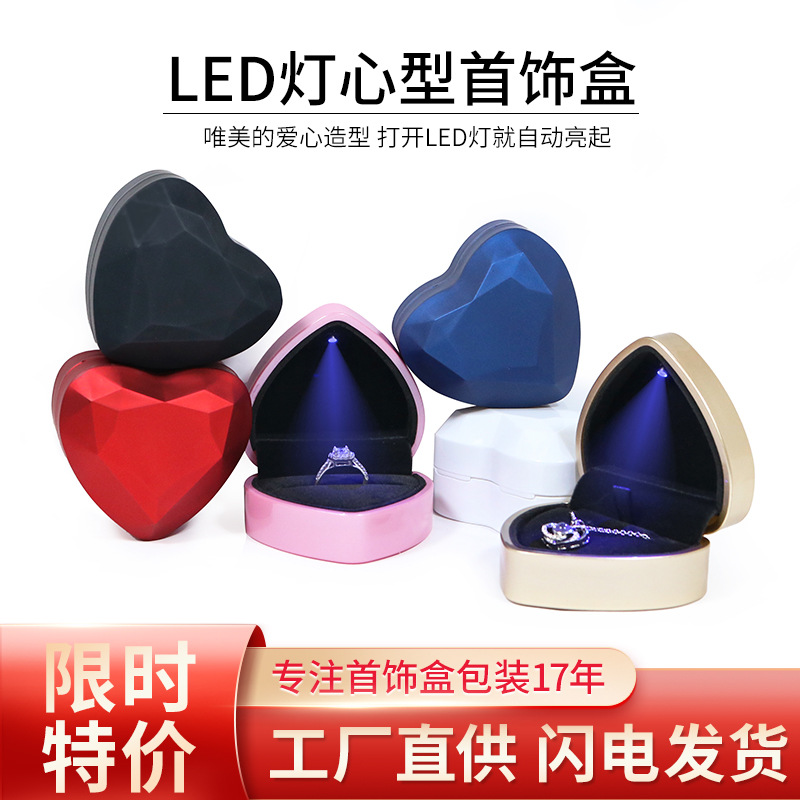 愛のledライトのアクセサリーの箱のハート型のピアスの指輪の箱の愛のネックレスの箱のペンダントのアクセサリーの箱の工場はまっすぐです。
