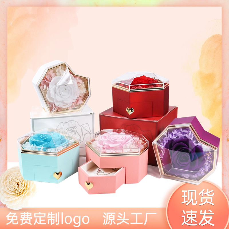 国境を越えて人気のバラのアクセサリー箱六角石鹸永生花包装箱一輪バラ母の日ギフトボックス
