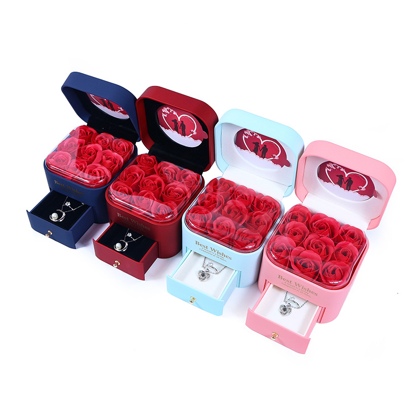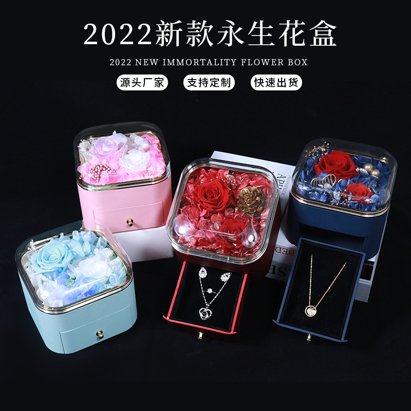 工場の現物のバラのネックレスのギフトボックスの引き出しの石鹸の永生の花のアクセサリーの箱のブレスレットの宝石のアクセサリーの箱