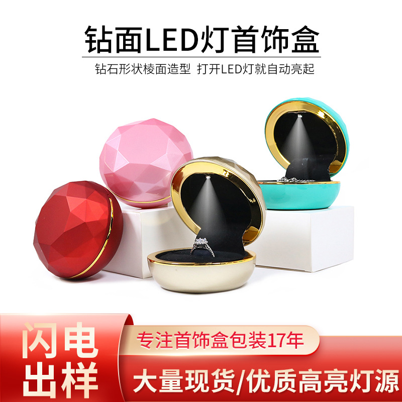 Ledライトローズリングボックス金辺漆面クリエイティブプロポーズドリルボックスledネックレスギフトボックスジュエリーボックス高級
