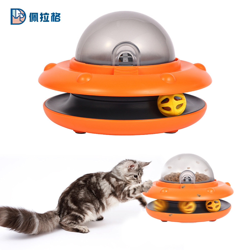 国境を越えた宇宙船電動給餌器遊具盤猫玩具電動漏れ猫ベルボール誘導ペット用品