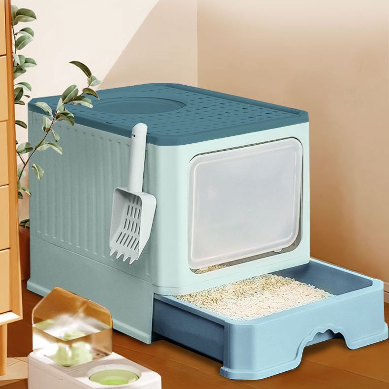 クロスボーダー新型全密閉型猫砂盆大サイズ折り畳み防臭引き出し式猫トイレ外はね防止猫用品