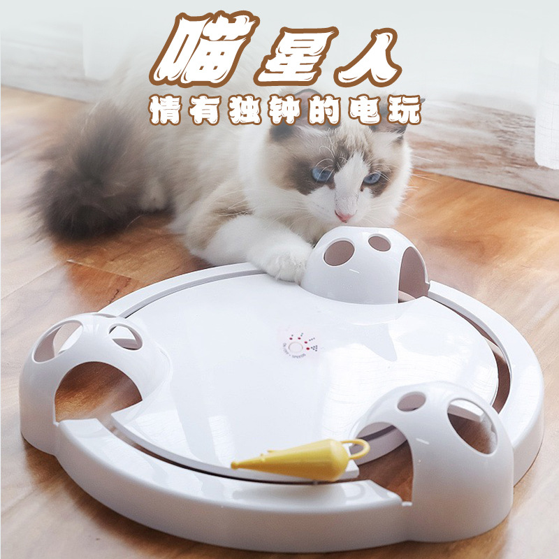 アマゾンの電動猫のおもちゃの猫の回転盤は両手のインタラクティブなペットのおもちゃを解放してネズミを狩ります。