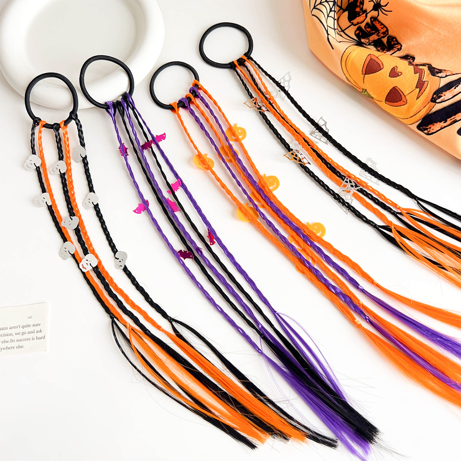 ハロウィーンのカラーロープ編み漫画の髪輪カボチャのコウモリのかつらの汚れたお下げのひもの高い馬尾の髪の筋の髪飾り