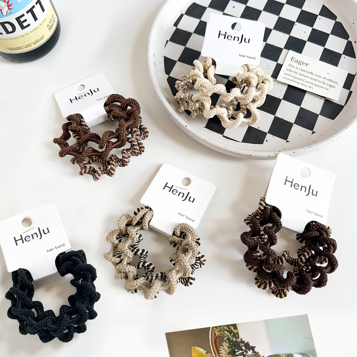 4本入り ~ 韓国の新しいミルクカレー系ヘアリング気質高弾力ねじ髪紐髪馬尾皮筋髪飾り