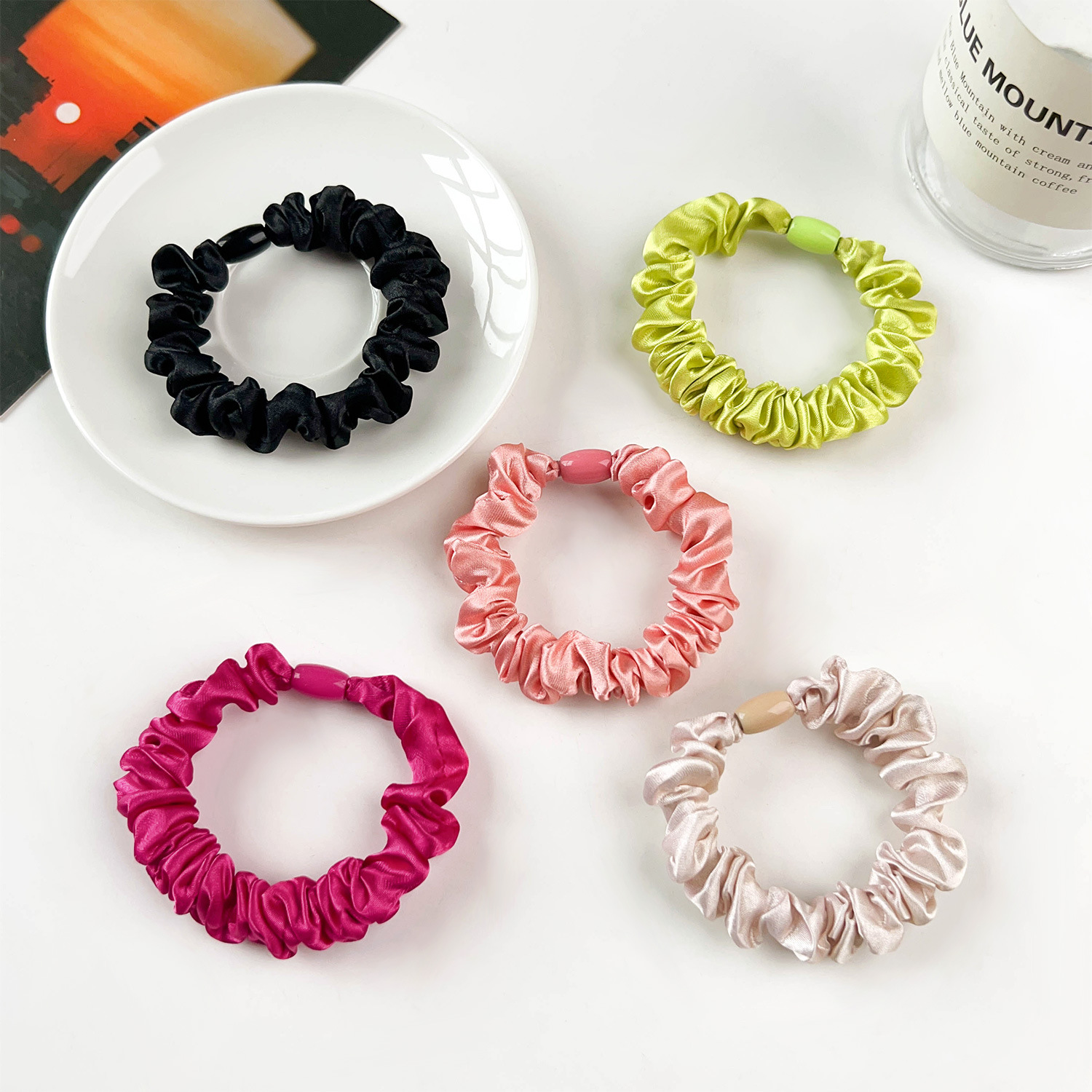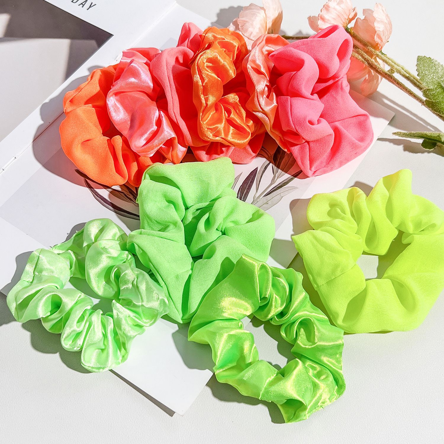 クロスボーダーAmazonの新しい蛍光サテンヘアゴムヨーロッパとアメリカの女性用の大きな無地のヘアゴムポニーテールヘッドロープ